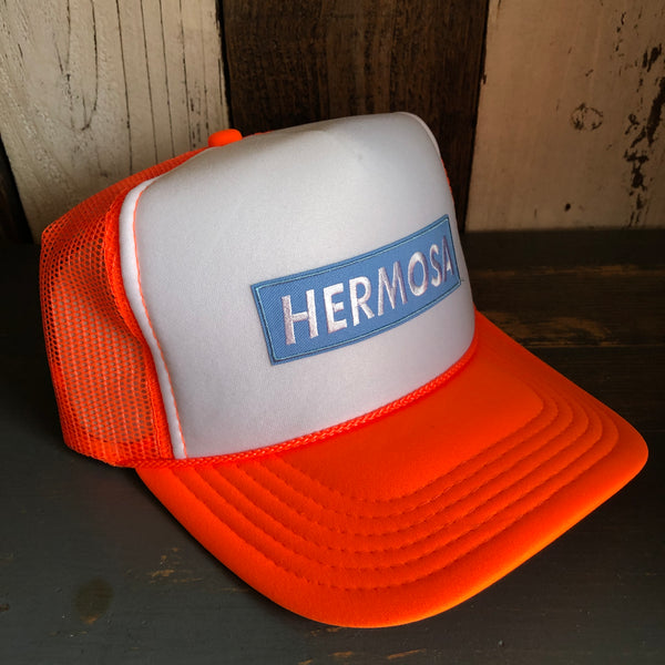Hermosa Beach BLUE SUPREME HERMOSA Trucker Hat - Neon Orange/White