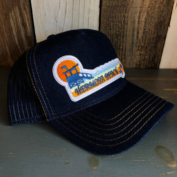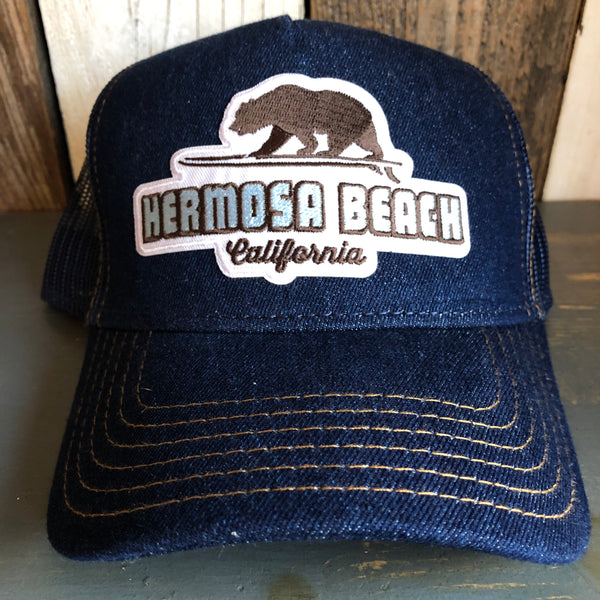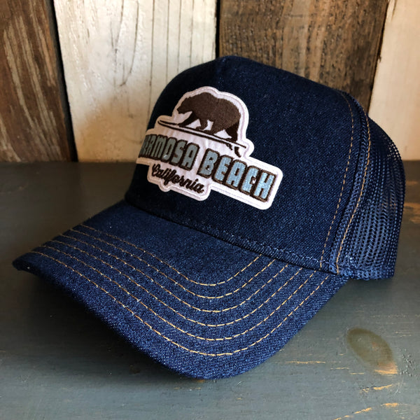 Hermosa Beach GOLDEN HOUR Premium Denim Trucker Hat - Navy/Gold Stitching