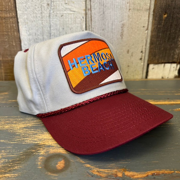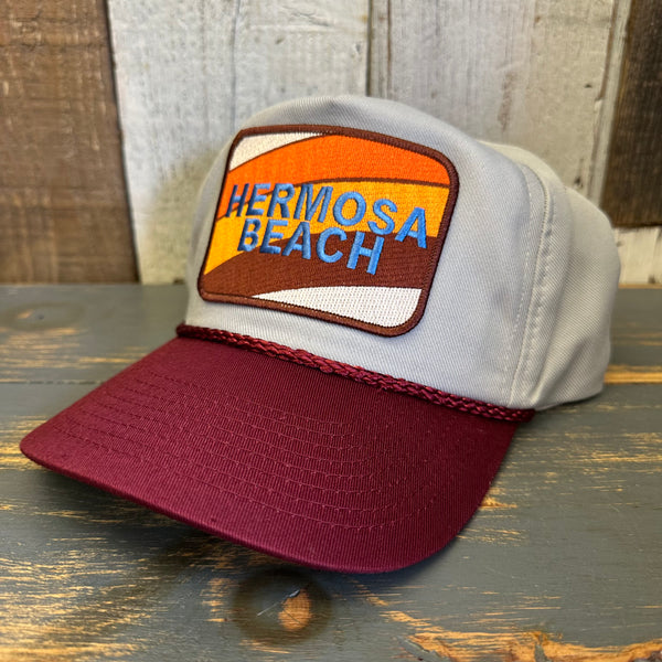 Hermosa Beach SURF HERMOSA :: OPEN DAILY 5-Panel Polyester Golf, 2-Tone - Grey/Maroon Braid