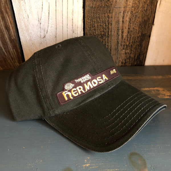 Hermosa Beach HERMOSA AVE - 5 Panel Low Profile Style Dad Hat with Velcro Closure - Olive Green/Black