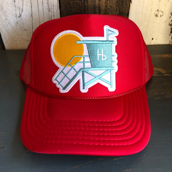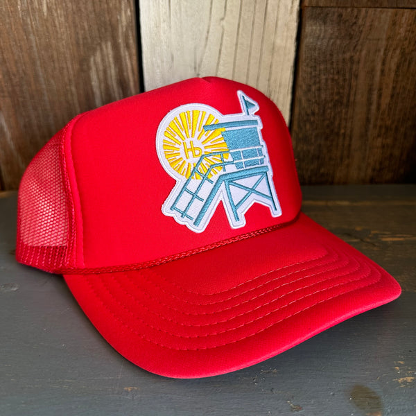 Hermosa Beach LIFEGUARD TOWER High Crown Trucker Hat - Red