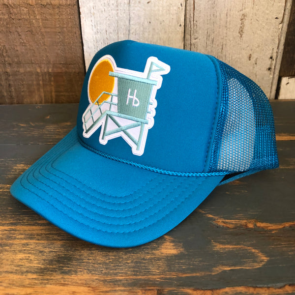 Hermosa Beach LIFEGUARD TOWER Trucker Hat - Neon Blue
