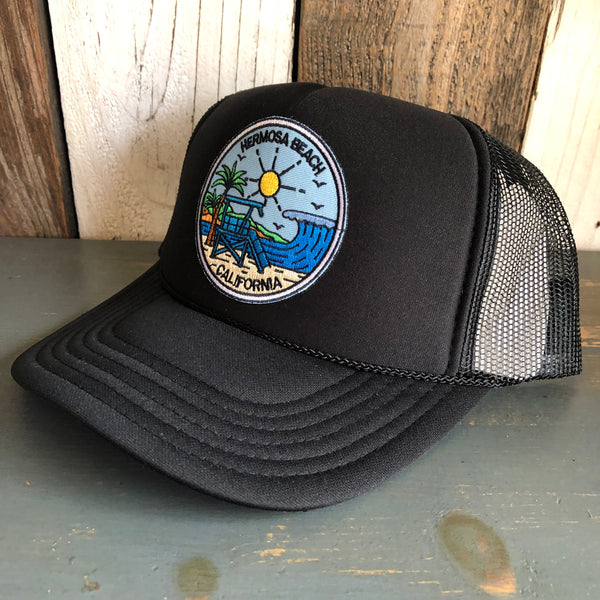 Hermosa Beach SHOREFRONT High Crown Trucker Hat - Black