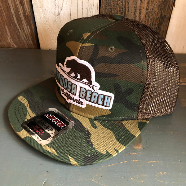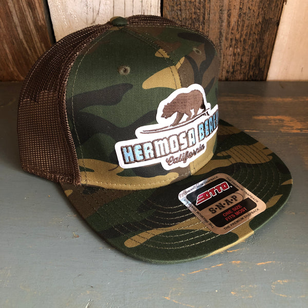 Hermosa Beach HERMOSA AVE Camouflage 6 Panel Mid Profile Mesh Back Snapback Trucker Hat - Dark Green/Brown/Dark Brown