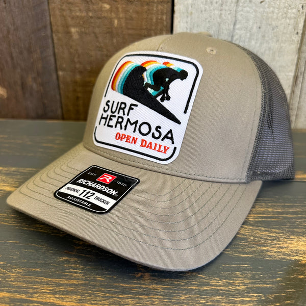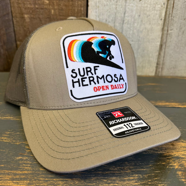 Hermosa Beach SURF HERMOSA :: OPEN DAILY Five-Panel Trucker Cap - Pale Khaki/ Loden Green