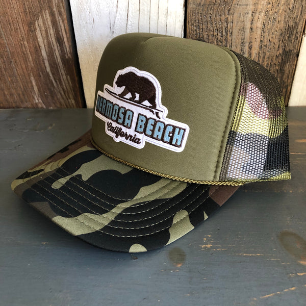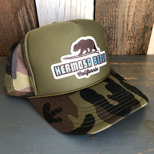 Hermosa Beach SURFING GRIZZLY BEAR Trucker Hat - Camouflage/Olive