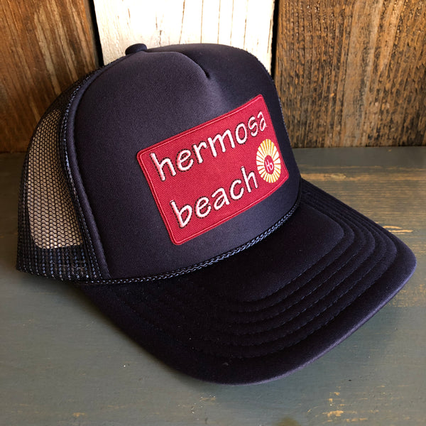 Hermosa Beach WELCOME SIGN High Crown Trucker Hat - Navy