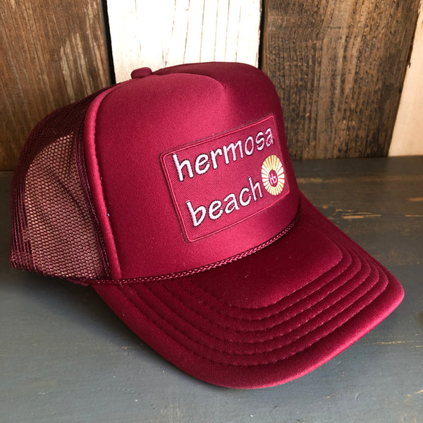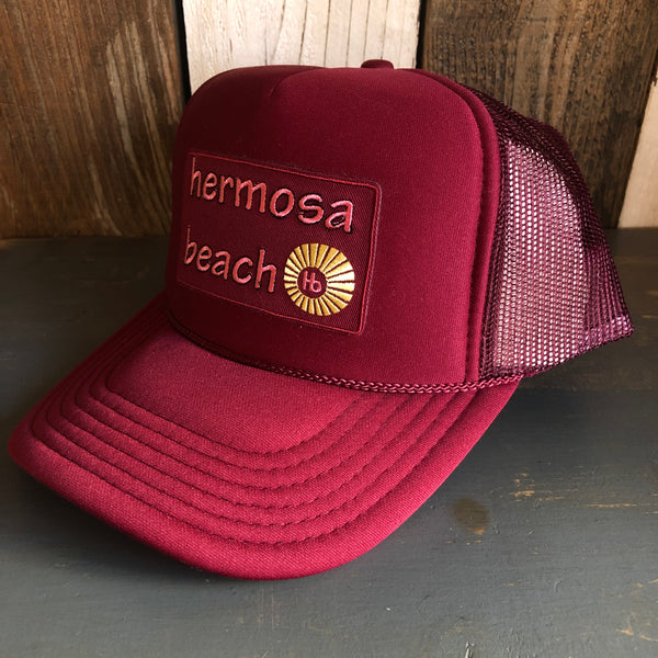 Hermosa Beach WELCOME SIGN Trucker Hat - Burgundy Maroon