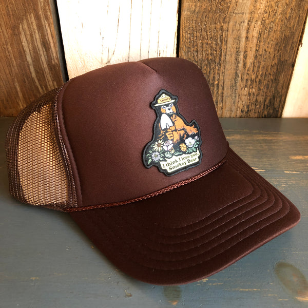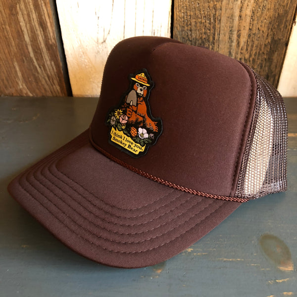 I THINK I LOVE YOU, SMOKEY BEAR High Crown Trucker Hat - Brown