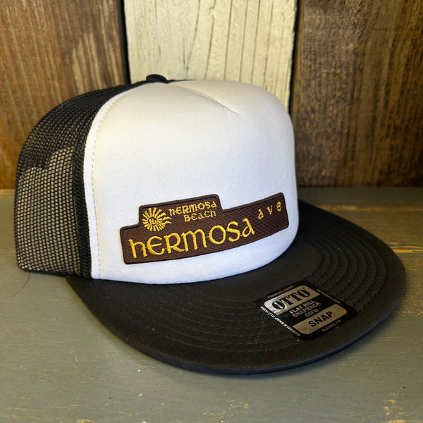 Hermosa Beach HERMOSA AVE Trucker Hat - Black/White (Flat Brim)