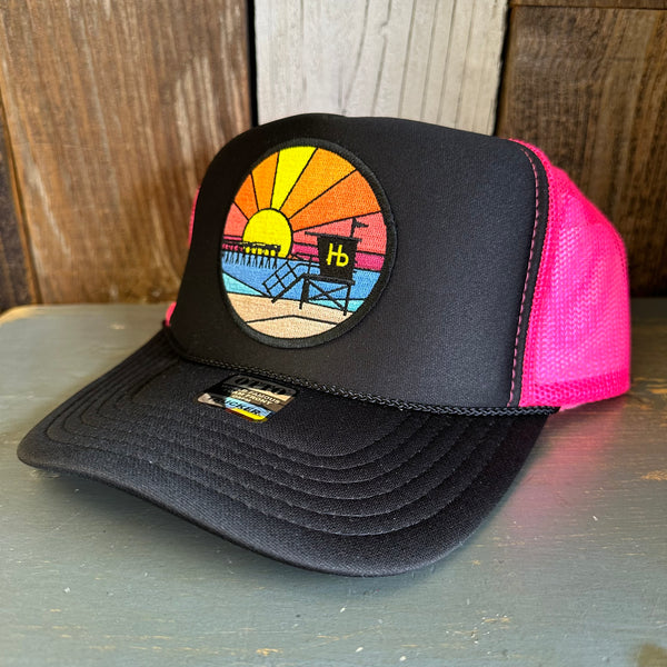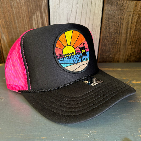 Hermosa Beach OBLIGATORY SUNSET High Crown Trucker Hat - Black/Pink/Black