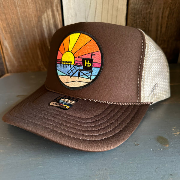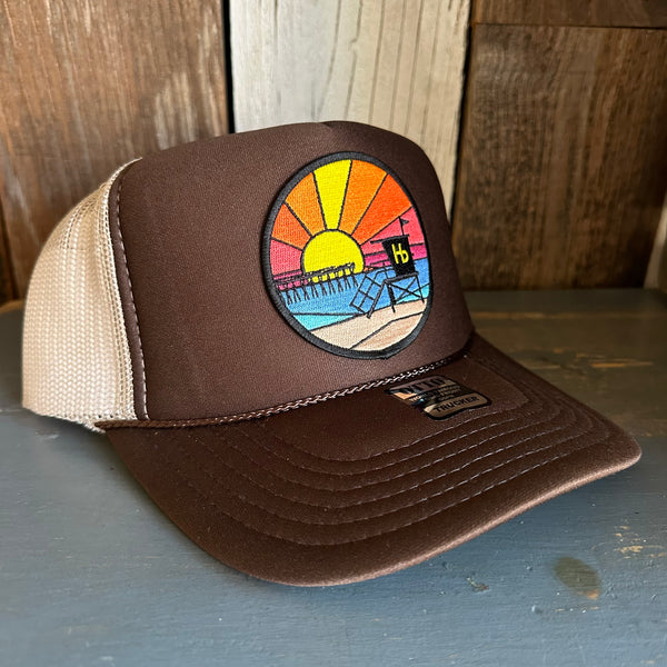 Hermosa Beach OBLIGATORY SUNSET High Crown Trucker Hat (Brown/Khaki)