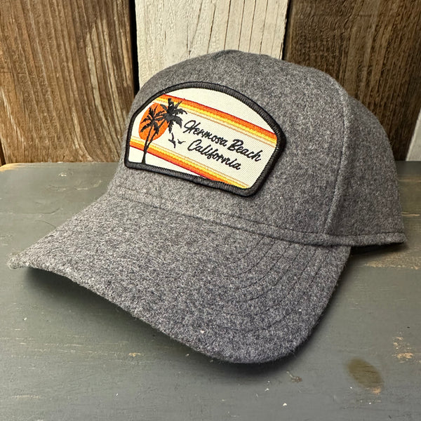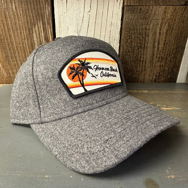 Hermosa Beach RETRO SUNSET 5 Panel Low Profile Melton Wool Blend Baseball Cap with Velcro Closure - Heather Grey
