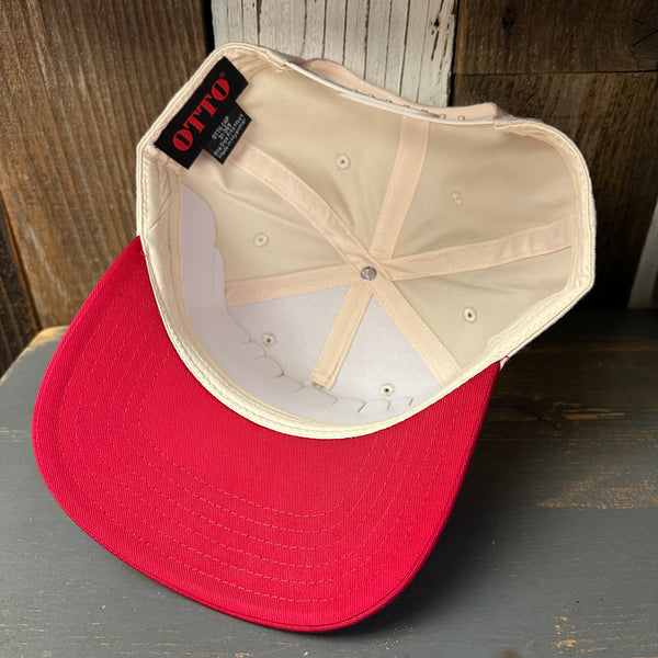 Hermosa Beach RETRO SUNSET 5 Panel Mid Profile Baseball Cap - Red/Khaki