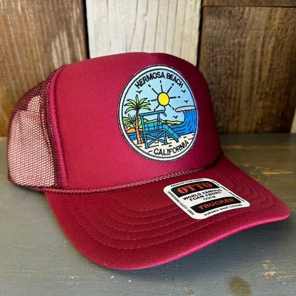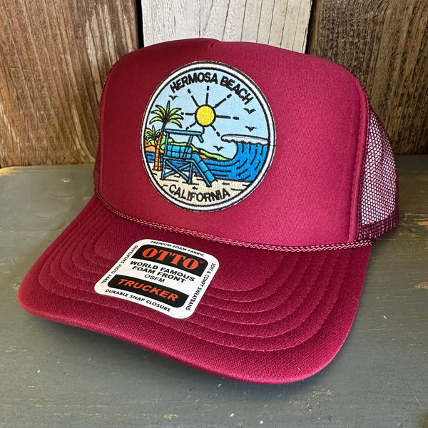 Hermosa Beach SHOREFRONT High Crown Trucker Hat - Burgundy Maroon