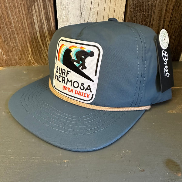 Hermosa Beach SURF HERMOSA :: OPEN DAILY - 5 Panel Nylon Hat - Blue Spruce
