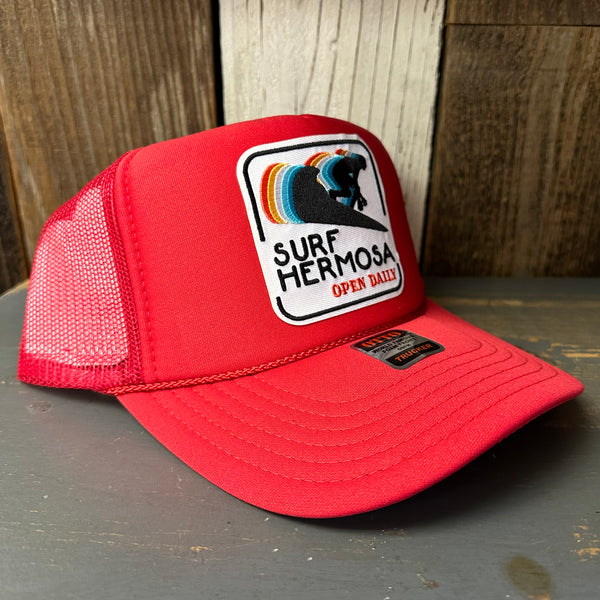 Hermosa Beach SURF HERMOSA :: OPEN DAILY Trucker Hat - Red