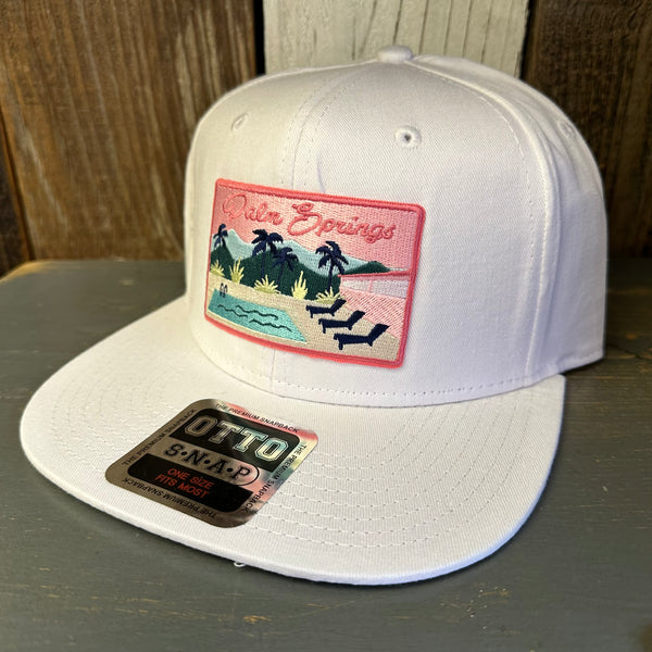 PALM SPRINGS, CALIFORNIA 6 Panel Mid Profile Snapback Hat - White