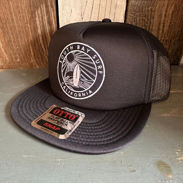SOUTH BAY SURF (Navy Colored Patch) Trucker Hat - Black (Flat Brim)