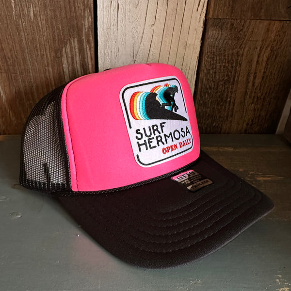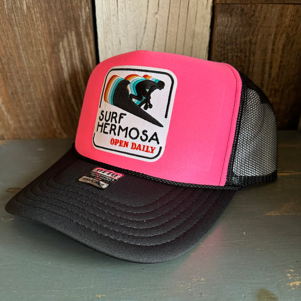 Hermosa Beach SURF HERMOSA :: OPEN DAILY High Crown Trucker Hat - Black/Pink