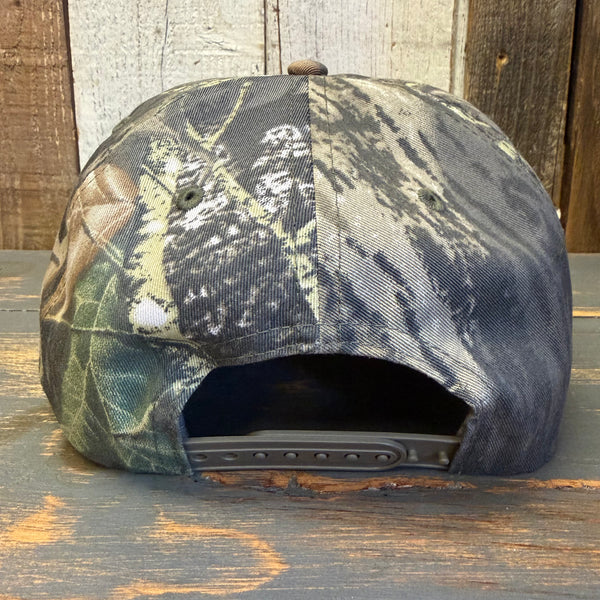 Unstructured front, plastic adjustable snapback, tonal under-peak, Camo pattern may vary from piece to piece