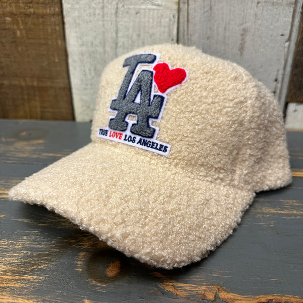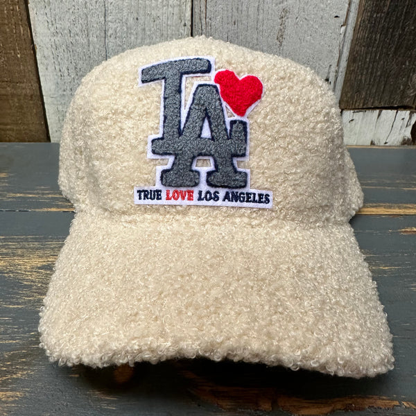 Show your support for Los Angeles while staying stylish with the True Love Los Angeles Sherpa Hat. This exclusive, high-quality hat features a bold, iconic design representing the heart and spirit of the City of Angels. Crafted with comfortable sherpa and an adjustable velcro fit, it's the perfect blend of fashion and function.