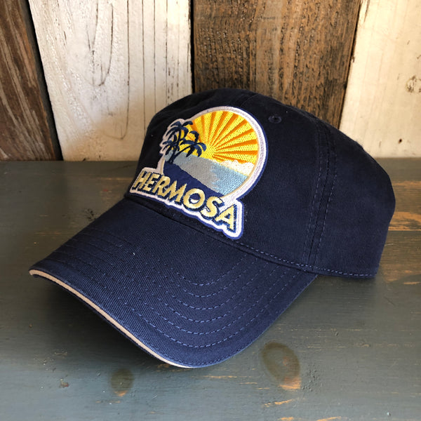 Hermosa Beach FIESTA - 6 Panel Low Profile Style Dad Hat with Velcro Closure - Navy/Navy/Khaki