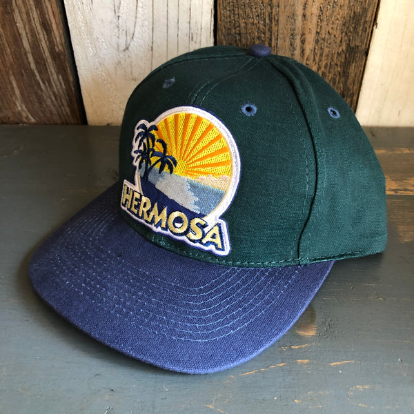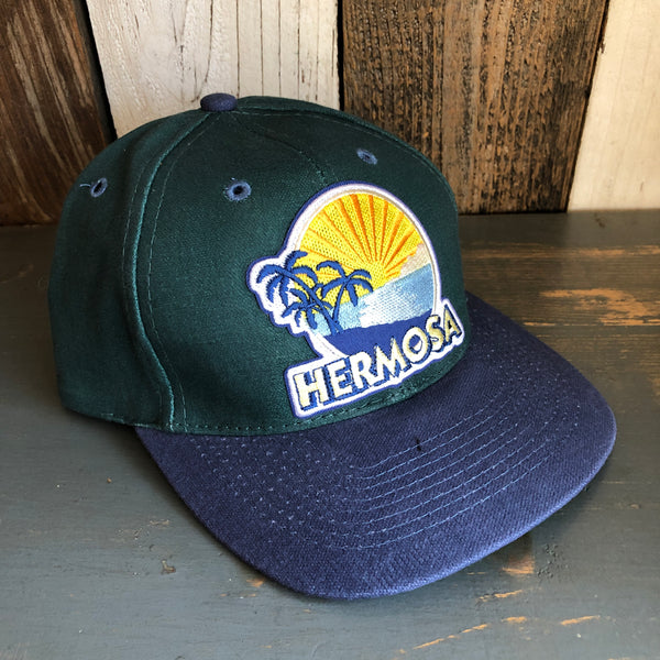 Hermosa Beach FIESTA - 6 Panel Low Profile Baseball Cap with Adjustable Strap with Press Buckle - Dark Green/Navy
