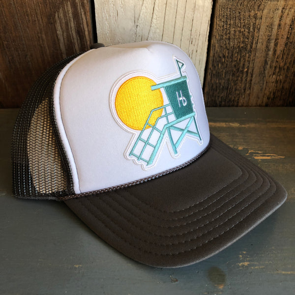 Hermosa Beach LIFEGUARD TOWER Trucker Hat - Charcoal Grey/White/Charcoal Grey