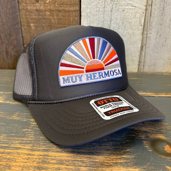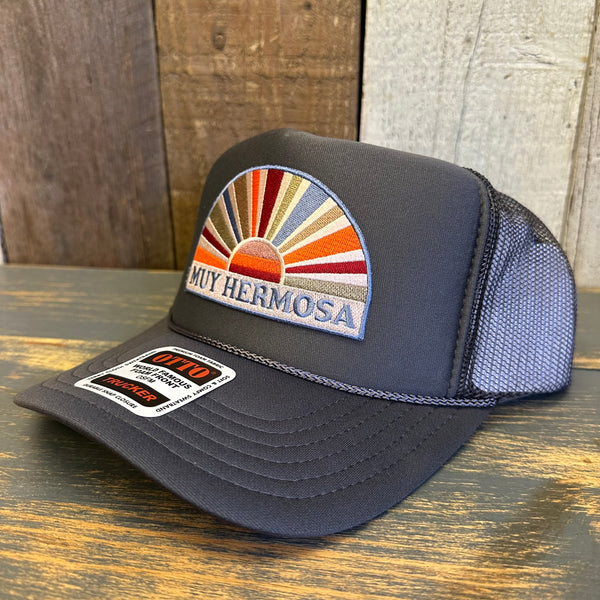 Hermosa Beach MUY HERMOSA High Crown Trucker Hat - Charcoal