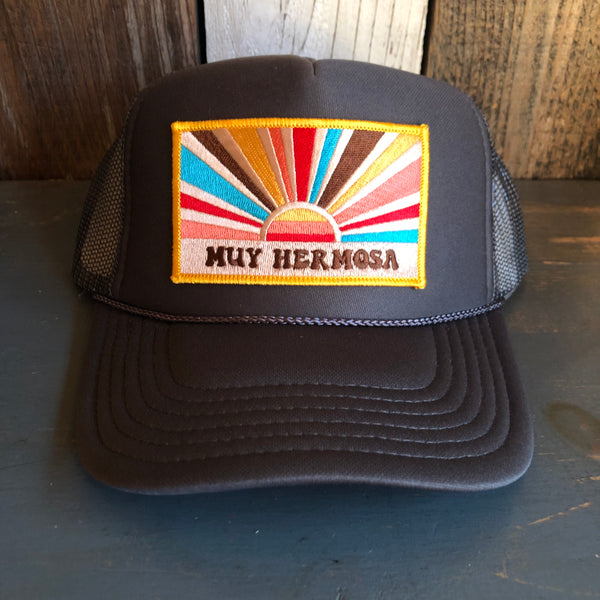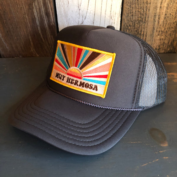 Hermosa Beach MUY HERMOSA High Crown Trucker Hat - Charcoal (Curved Brim)