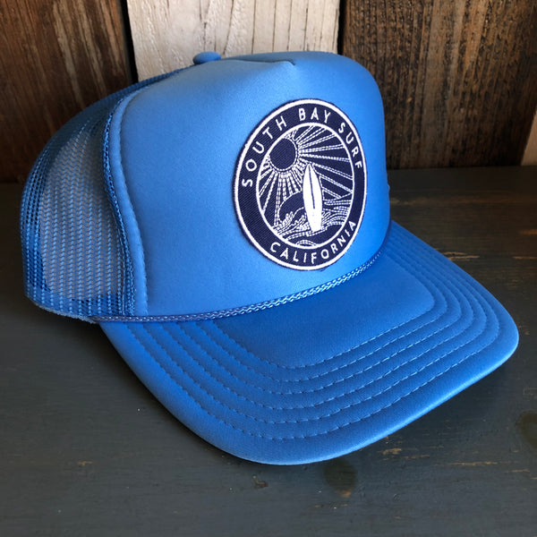 Hermosa Beach SOUTH BAY SURF (Navy Patch) High Crown Trucker Hat - Col. Blue
