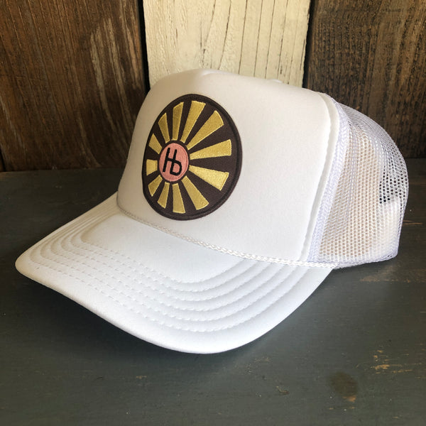Hermosa Beach SUNBEAMS High Crown Trucker Hat - White