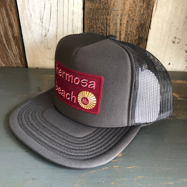 Hermosa Beach WELCOME SIGN Trucker Hat - Charcoal Grey (Flat Brim)