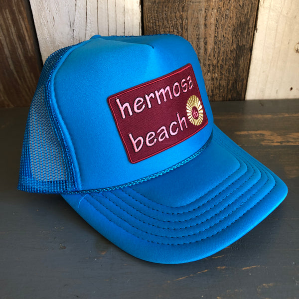 Hermosa Beach WELCOME SIGN Trucker Hat - Neon Blue