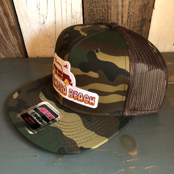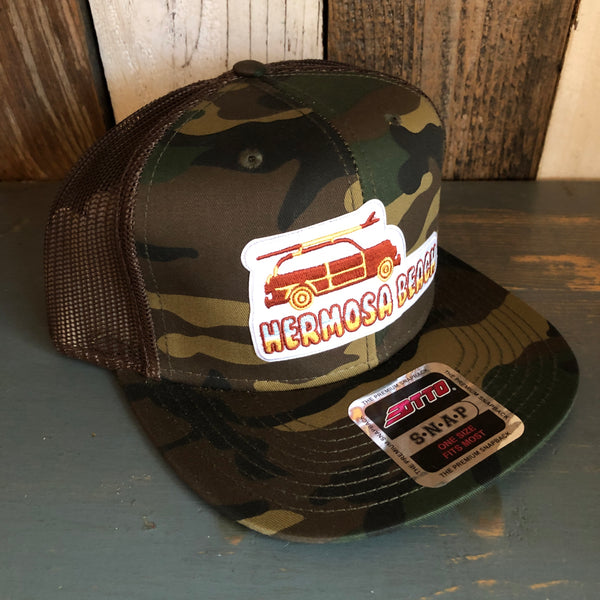 Hermosa Beach WOODIE Camouflage 6 Panel Mid Crown Mesh Back Snapback Trucker Hat - Dark Green/Brown