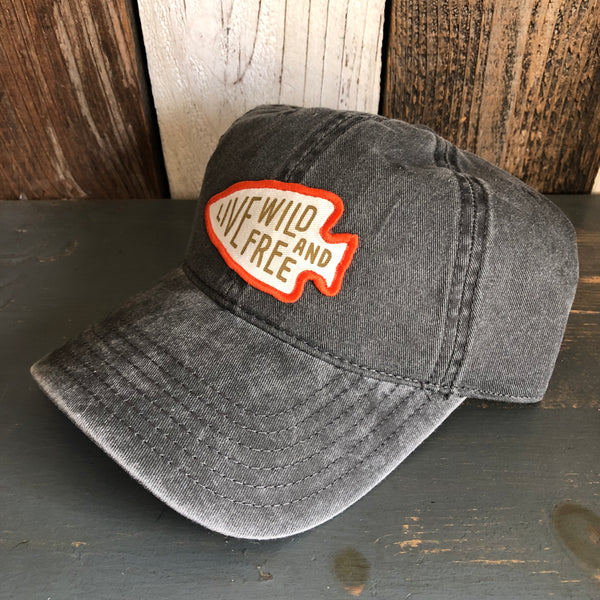 LIVE WILD AND FREE - 6 Panel Low Profile Style Dad Hat with Velcro Closure - Charcoal Grey