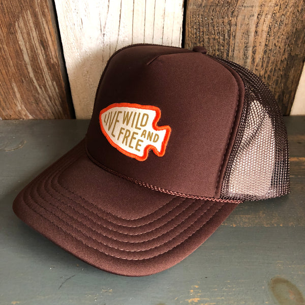 LIVE WILD AND FREE High Crown Trucker Hat - Brown