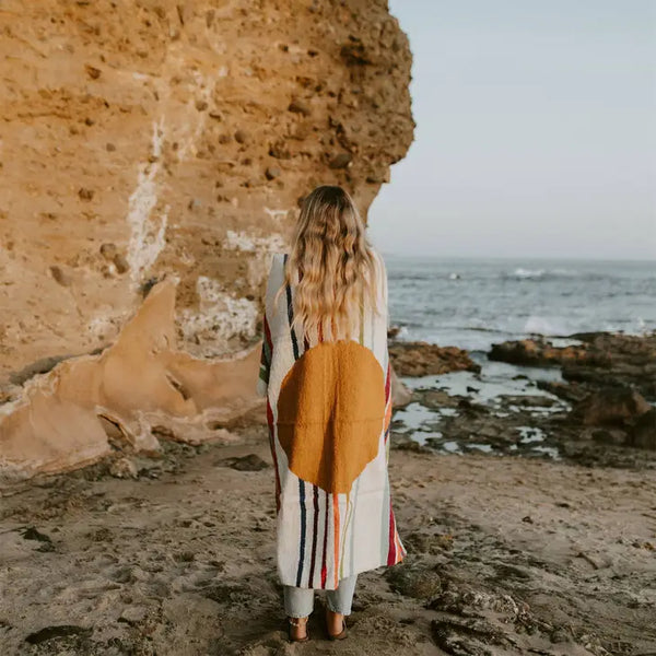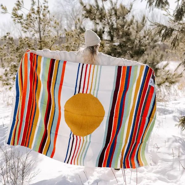 Handwoven with 100% post-consumer recycled materials. One tree planted for every blanket sold. This midweight blanket is soft to the touch (and gets softer with every use) to keep you warm and cozy on cold nights and it's plenty big enough to share with a friend. These aren't machine-made clones - these are completely individual, one-of-a-kind works of art. Expect Variances! As a handmade and handwoven blanket, there may be variances in the details, and the hue of the blanket colors may be slightly different than what's pictured. Imperfections and variances are exactly what makes handwoven art special (just like you)! Every blanket is beautiful in its uniqueness so you should feel comfortable that you'll get a blanket you'll be happy with - but if you have questions about this please feel free to contact us before you order!