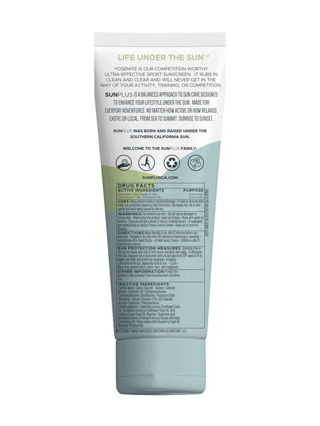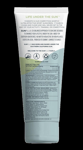 Yosemite is our competition worthy, ultra-effective, sport sunscreen. It rubs in clean and clear and will never get in the way of your activity, training, or competition. Its high SPF and max sweat and water resistance will never let you down when you need it.