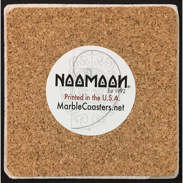Each coaster is printed on 4” x 4” tumbled marble and backed with protective cork. Handcrafted in the USA, our designs showcase the natural elegance and beauty of the marble pieces. Use as a drink coaster, keepsake or art piece, these beautiful coasters will protect your furniture from the perils of glassware. Marble imported from Africa and Turkey, designed and handcrafted in the USA.