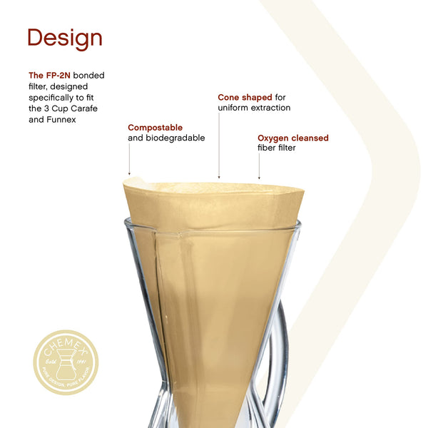 All CHEMEX® Coffeemakers used together with the scientifically designed, patented CHEMEX® Bonded Filters, will guarantee that our pourover brewing process will deliver the perfect cup of coffee, without any sediments or bitter elements.