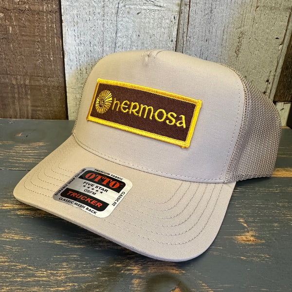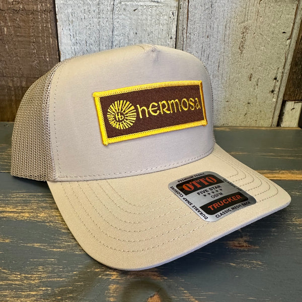Hermosa Beach AS REAL AS THE STREETS 5 Panel Mid Profile Mesh Back Trucker Hat - Khaki
