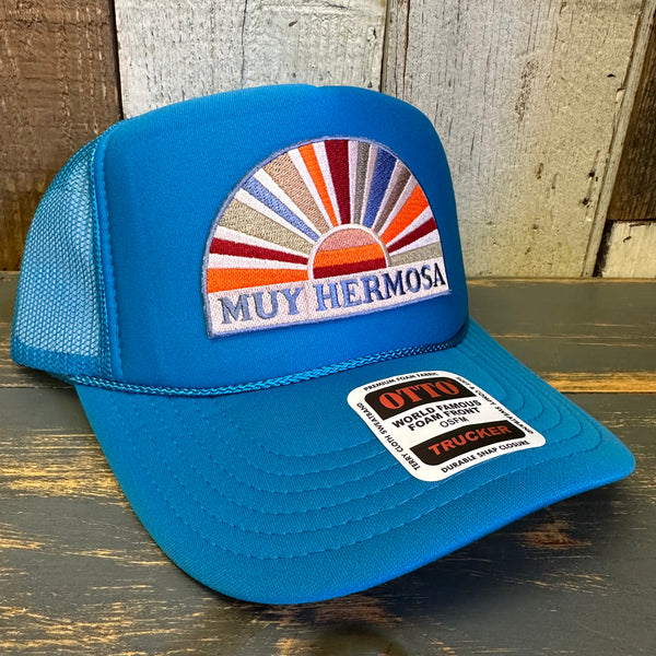 Hermosa Beach MUY HERMOSA High Crown Trucker Hat - Turquoise Blue