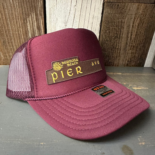 Hermosa Beach PIER AVE High Crown Trucker Hat - Burgundy Maroon
