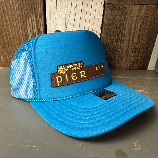 Hermosa Beach PIER AVE High Crown Trucker Hat - Turquoise