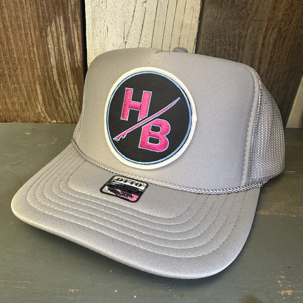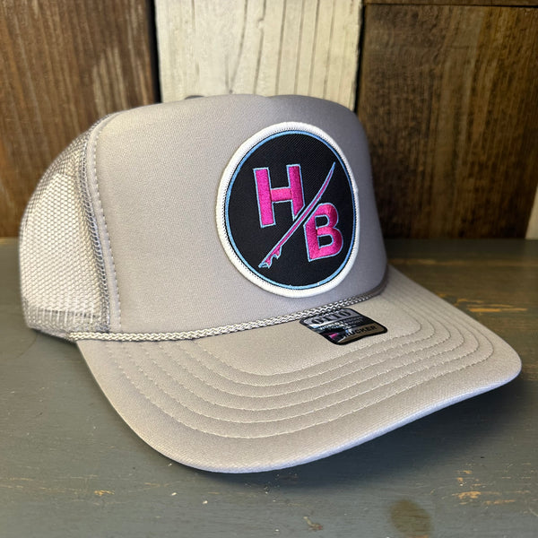 Hermosa Beach SO PITTED! :: HB SURFBOARD High Crown Trucker Hat - Grey (Curved Brim)
