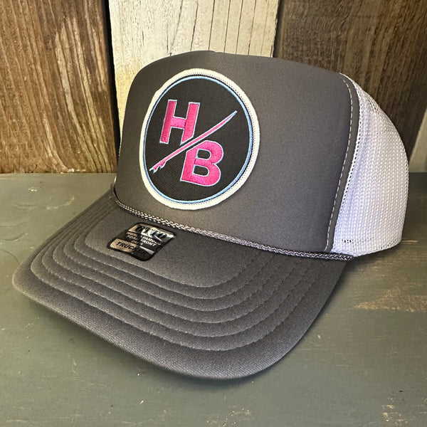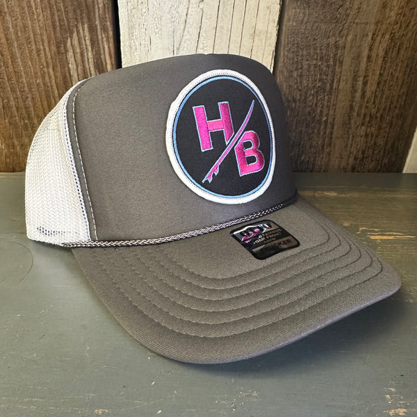 Hermosa Beach SO PITTED! :: HB SURFBOARD Trucker Hat - Charcoal Grey/White