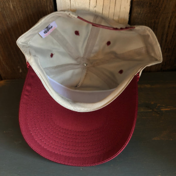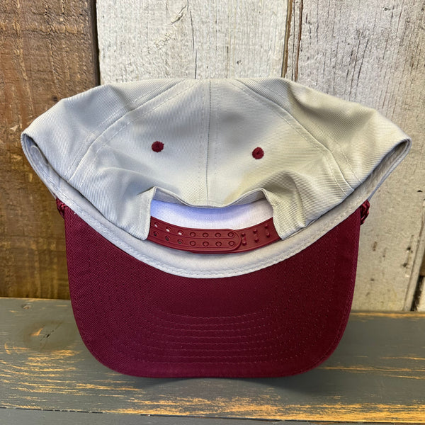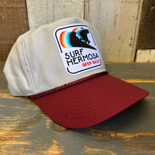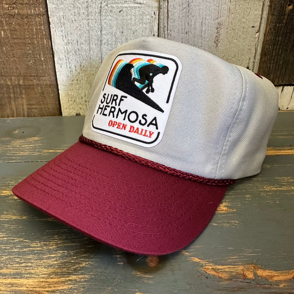 Hermosa Beach SURF HERMOSA :: OPEN DAILY 5-Panel Polyester Golf, 2-Tone - Grey/Maroon Braid