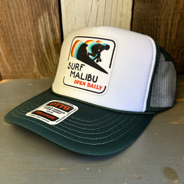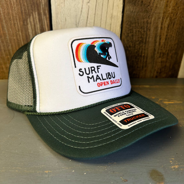 SURF MALIBU :: OPEN DAILY High Crown Trucker Hat - Dark Green/White